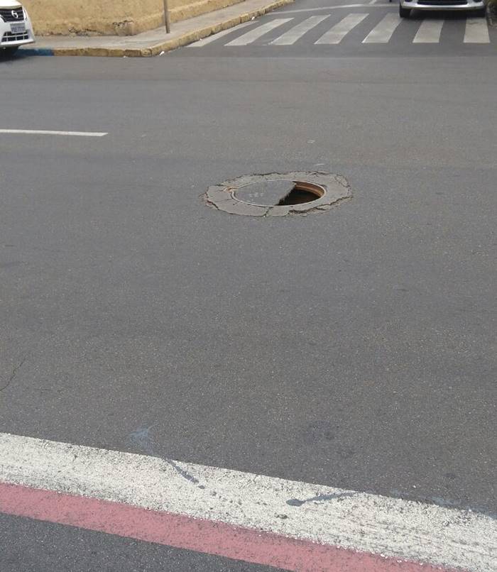 Um grande perigo em pleno Centro de Petrolina coloca em risco os condutores de veículos, sobretudo motociclistas. Um bueiro parcialmente quebrado na Avenida Guararapes, uma das principais do Centro, chamou a atenção de um leitor do Blog, que enviou um foto do problema. Portanto, quem estiver circulando pela Guararapes, próximo à segunda esquina do Colégio Maria Auxiliadora, é bom redobrar a atenção.