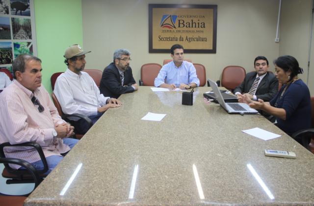 Diante do atual cenário no estado, o secretário da Agricultura da Bahia (Seagri), Eduardo Salles, reuniu-se nesta segunda-feira (14), com o diretor-geral do Instituto Estadual do Meio Ambiente (Inema), Júlio Mota, a diretora da empresa ModClima, Majory Imai, e presidentes de sindicatos rurais, buscando avançar na elaboração de um projeto-piloto, no valor de R$ 200 mil, para o mapeamento das regiões do Piemonte da Chapada Diamantina e Sudoeste.