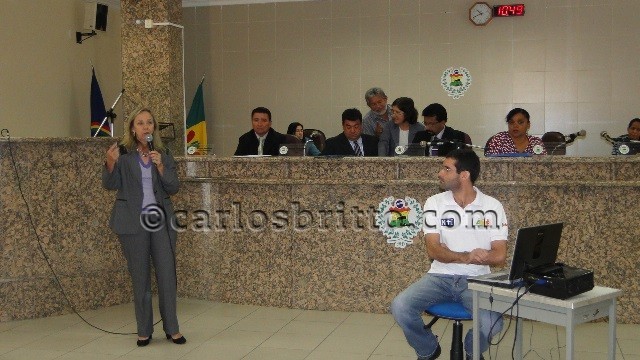 A secretária de Saúde de Petrolina, Lúcia Giesta, faz uma explanação, neste momento, na Casa Plínio Amorim, das ações que sua pasta vem executando na cidade.