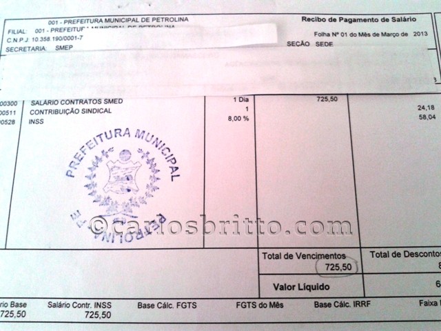 QUE VERGONHA! UM ABSURDO! POIS O PESSOAL DA FAXINA NAS EMPRESAS E AS COPEIRAS DAS EMPRESAS DE REFEIÇÃO INDUSTRIAL EM PETRÔ GANHAM MAIS DO QUE ISSO. É POR ISSO QUE EU DIGO: EITA PREFEITINHO CARA DE PAU ESSE TAL DE DOUTOR DOS ZOIOS ESSE TAL DE LÓSSIO. VOU LHE ENVIAR UM PRESENTE DOUTOR: UM VIDRO DE ÓLEO DE PEROBA PRA VOIS MI CÊ PASSAR NA CARA QDO FIZER A BARBA. POIS VAI QUE APARECE CUPIM….