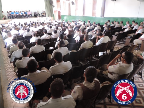O 6° Batalhão de Polícia Militar (BPM) em Senhor do Bonfim, norte do Estado, realizou no dia de ontem (20) uma parada geral – reunião de tropa alusiva ao Natal e final de ano. O evento, realizado no auditório do Colégio Estadual, contou com as presenças do comandante do Batalhão, Tenente-Coronel José Carlos Soares Mariano, além dos demais oficiais e praças, do pastor Josemário João da Silva (Igreja Batista Nova Sião), dos representantes da Aspra e do Colégio Nossa Senhora do SS.Sacramento (Casinha Feliz).