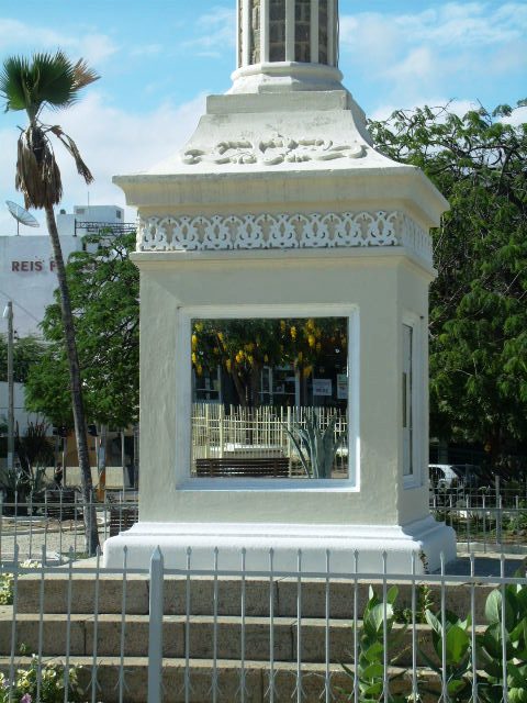 Já virou piada mesmo,ainda bem que na minha infância tirei foto exatamente aí,não tinha essas grades e muito menos esse espelho horroroso, que pode até prejudicar ,dependendo da direção do sol,refletir a luz e atrapalhar o pedestre nesse trecho.Eu na minha ignorância,deixaria como estava ,essas praças centrais contam e fazem parte da história da cidade.Modernidade nas novas praças,êita povo “letrado” e burro