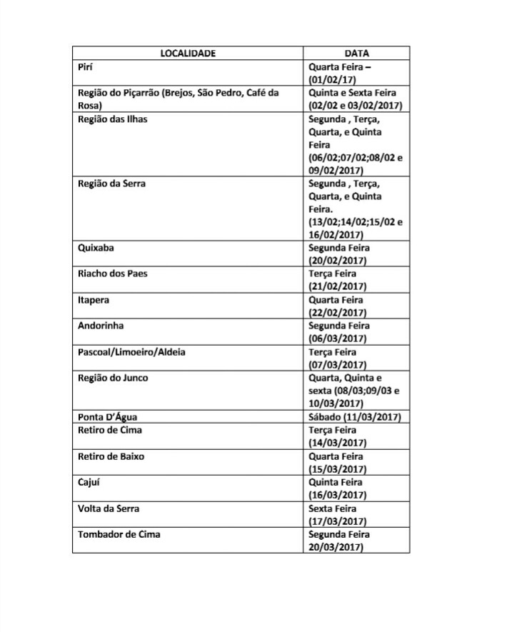 Para receber a imunização, os moradores do distrito deverão estar munidos de documento de identidade. O atendimento vai acontecer das 8h às 12h e das 14h às 17h, nos postos de saúde e escolas no interior que não tem posto, até dia 20 de março. Mais informações pelo telefone do Setor de Vigilância em Saúde, na Secretaria de Saúde: (74) 3537-2592.
