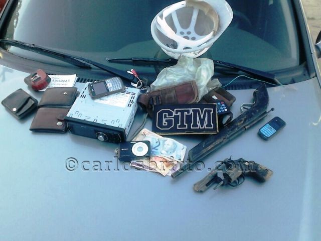 Após várias rondas, os policiais da Companhia de Emprego Tático Móvel (Ceto/CPRN) encontraram os bandidos no bairro Malhada da Areia em um veículo Gol. Além dos objetos pessoais do casal, os policiais apreenderam um revólver calibre 38, cinco cartuchos intactos e a quantia de R$ 200.