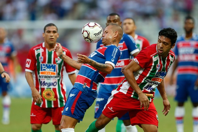 Depois, aos 12, foi a vez de Éverton finalizar para fora pelo Fortaleza, que ficou com um a menos aos 34, após a expulsão de Wellington Reis. O Salgueiro tentou até o fim, e arrancou uma falta na meia lua da área do Fortaleza, quase no fim do jogo. Rodrigo Potiguar foi para a cobrança, mas acabou carimbando a barreira. Com o resultado o Carcará se mantém em quinto no Grupo A, com 14 pontos, mas pode perder posições com os demais jogos deste domingo (30). (Foto: JL Rosa/Agência Diário)