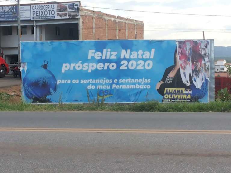 A pré-candidata à prefeitura de Serra Talhada (PE), Sertão do Pajeú, Eliane Oliveira (PSL), prestou queixa na delegacia após ter uma de suas peças publicitárias depredada na sexta-feira (17). Segundo o site Farol de Notícias, um outdoor instalado às margens da BR-232, com uma mensagem de Natal, foi rasgado.