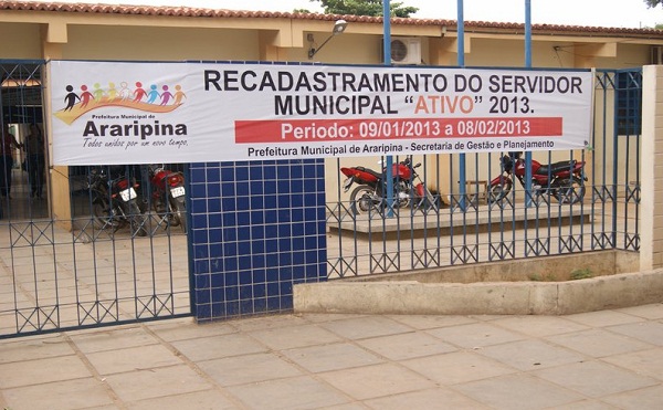 Os servidores efetivos do município de Araripina (PE), no Sertão do Araripe, devem fazer até o dia 8 de fevereiro o recadastramento junto à Secretaria Municipal de Gestão e Planejamento. O serviço está sendo realizado na Escola Independência, de segunda a sexta-feira, das 8h às 14h.