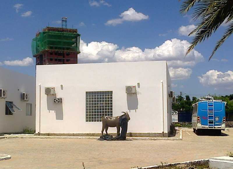 Símbolo emblemático do Bodódromo da Areia Branca, zona leste de Petrolina, a estátua do bode foi vista recentemente no prédio da Guarda Municipal, no Parque Josepha Coelho, pronto para retornar ao seu local de origem.