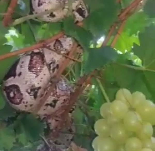 Os trabalhadores rurais de uma plantação de uva no Assentamento Ouro Verde, localizado no Município de Lagoa Grande (PE), Sertão do São Francisco, receberam uma ‘visita’ inesperada. Uma cobra Jiboia foi encontrada no parreiral, causando um grande susto.