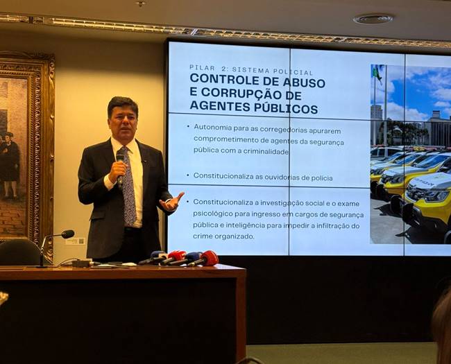 Após 33 sessões, 24 audiências públicas e três seminários, o relator da PEC da Segurança, deputado federal Mendonça Filho (UB/PE), apresentou na reunião de líderes, nesta terça-feira (09/12), os quatro pilares do relatório: política criminal, sistema policial, sistema prisional e política de segurança pública. “O texto é ousado e corajoso. Cria as condições para enfrentar questões como fim de progressão de pena para faccionados e crimes violentos, a asfixia financeira do crime organizado, cria o direito da vítima à Justiça, dá condições de maior investimento nas forças policiais, desmonte do escritório do crime no sistema prisional, responsabilização de agentes públicos envolvidos em corrupção e maior responsabilidade ao Congresso Nacional na contenção do crime organizado”, resumiu Mendonça Filho. O relatório do […]