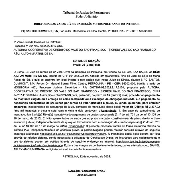 Detalhes deste Edital de Citação também podem ser conferidos no link disponibilizado pelo Blog.