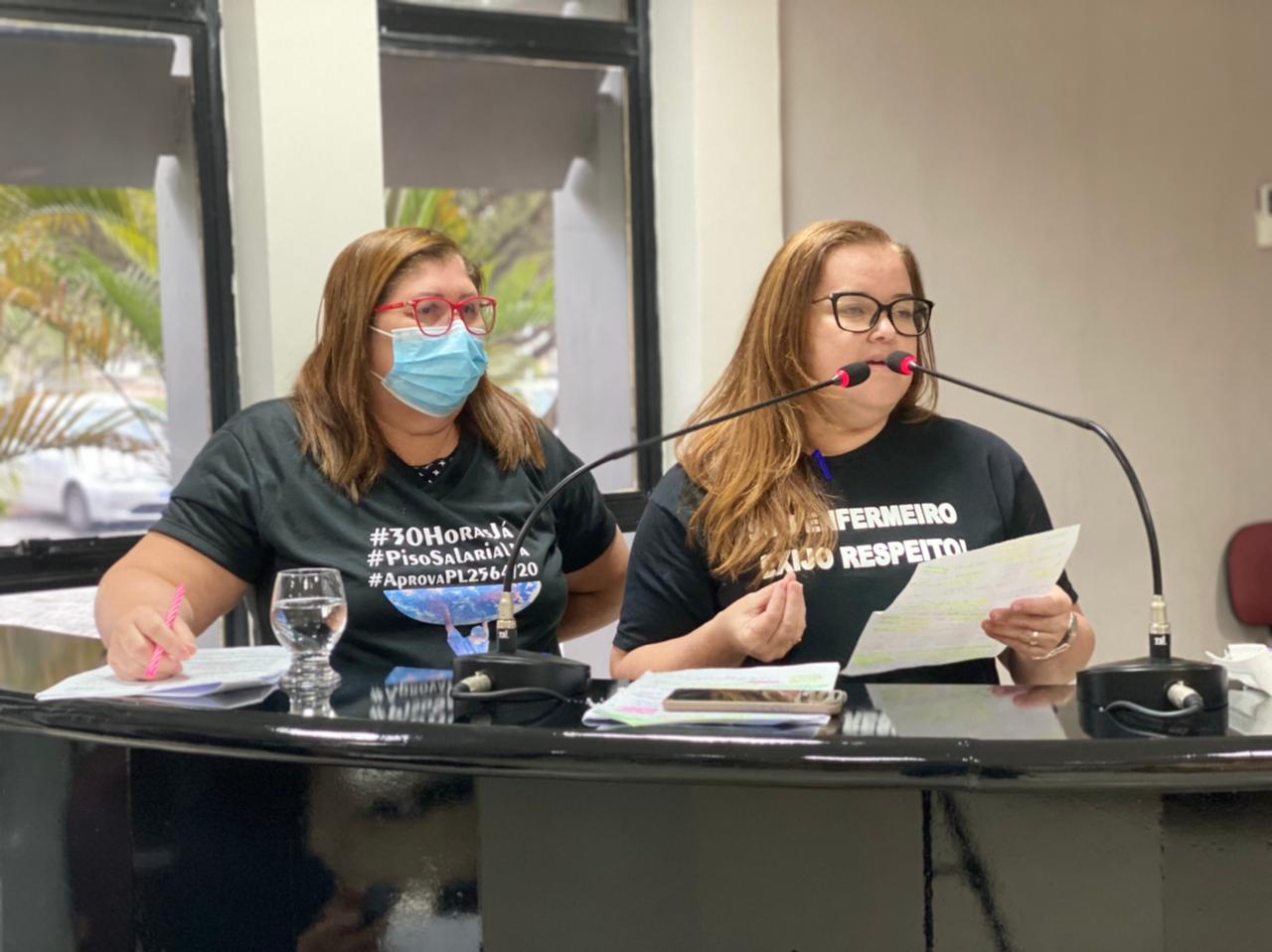 As representantes dos técnicos de enfermagem e dos enfermeiros de Petrolina, Rosângela Maria lima Galvão (técnicos) e Daniella Alencar (enfermeiros), participaram da sessão plenária deste terça-feira (11), na Câmara Municipal, para pedirem a ajuda dos vereadores sobre o Projeto de Lei 2.564/2020, que tramita no Senado Federal. A matéria tem por objetivo estabelecer o piso salarial para as categorias de enfermeiros, técnicos e auxiliares de enfermagem e parteiras, além de discutir as questões referentes aos problemas enfrentados pelas categorias em meio a pandemia da Covid-19.