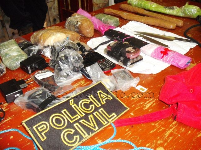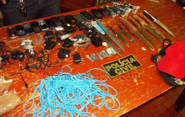 facas e celulares_640x406celulares_640x480Policiais civis prenderam na madrugada desta sexta-feira (8) dois homens com facas, celulares, carregadores e chips. Segundo a assessoria de comunicação da Polícia Civil, o material seria levado para o presídio de Salgueiro (PE), no Sertão Central.