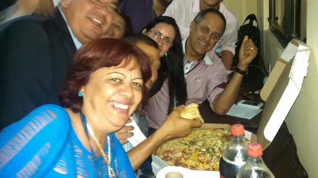Explica-se: o longo debate dos vereadores com o reitor da Univasf, Julianeli Tolentino, atiçou a fome dos repórteres que cobriam a sessão. Edenevaldo Alves (Petrolina FM), então, foi provocado e aceitou bancar duas pizzas e dois refrigerantes, fazendo a alegria dos coleguinhas de imprensa, que se refestelaram com as iguarias. Claro que houve ‘penetras’ também. Mas faz parte.