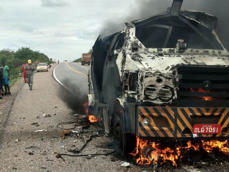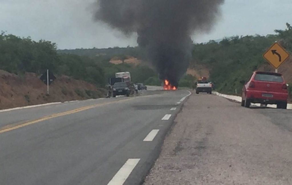 A investida dos bandidos ocorreu no mesmo trecho de rodovia onde há menos de um mês (no dia 19 de janeiro), um assalto a outro carro-forte aconteceu. Da mesma forma que aquela ocasião, a prática criminosa desta terça foi ousada. Os assaltantes explodiram e incendiaram o veículo, e em seguida fugiram. Até o momento não se sabe a quantia em dinheiro levada pelo bando. (fotos: WhatsApp/divulgação)