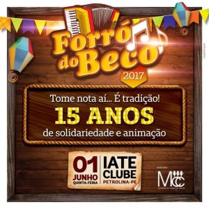 O tradicional Forró do Beco, evento beneficente consolidado em Petrolina, chega a sua 15ª edição na próxima quinta-feira (1º/06), revertendo toda a renda arrecadada para o auxílio a pessoas em tratamento do câncer. Os ingressos para a festa seguem à venda na Apami e Portal SG.