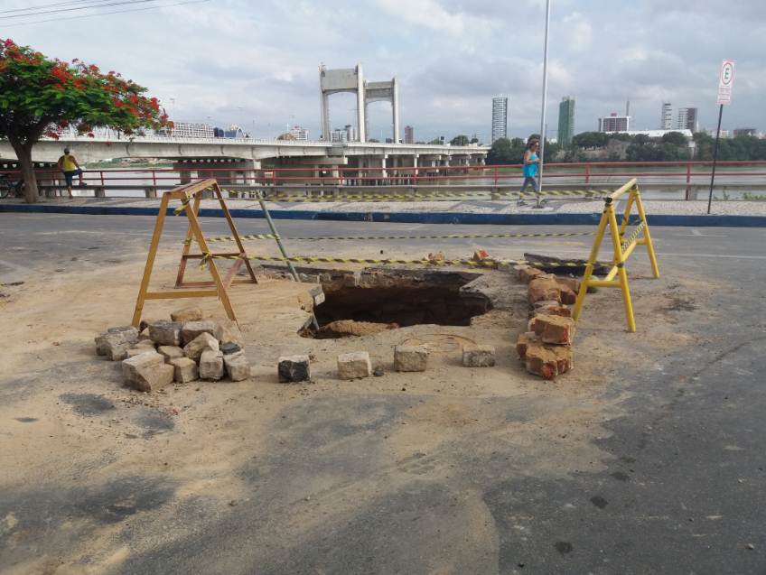 Devido a um buraco que voltou a se abrir ao lado de um Poço de Visita (PV), ou bueiro, no asfalto da Orla de Juazeiro (BA) na tarde de ontem (5), o trecho da loja da Vivo até o Banco Bradesco continua interditado para a passagem de veículos.