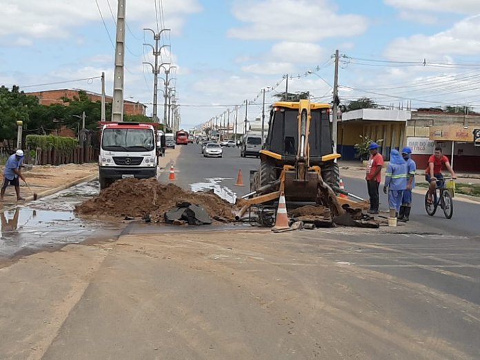 Por causa do vazamento, os servidores da Secretaria de Infraestrutura, Mobilidade e Serviços Públicos (Seinfra) tiveram que interromper os trabalhos e aguardar a chegada de uma equipe de manutenção da Compesa, para fazer de novo a intervenção no cano.