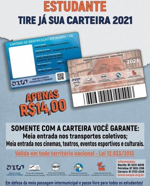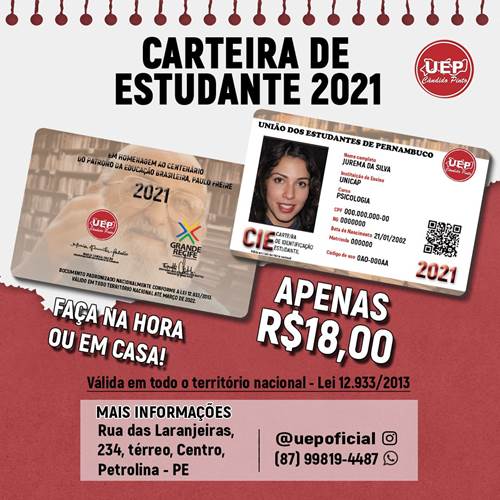 Após passar um período fechada em virtude das medidas restritivas de combate à pandemia do novo coronavírus (Covid-19), a sede da União dos Estudantes Secundaristas de Pernambuco (UESP) voltou a funcionar esta semana para confeccionar as carteiras de estudante com validade em todo o território nacional. Para dar entrada no documento, é necessário entregar uma foto 3×4, cópia de um documento oficial com foto, cópia do comprovante de matrícula ou declaração de vínculo e preencher o formulário da entidade.