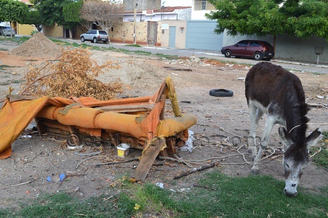 Circular por alguns bairros de Petrolina pode ser uma aventura nada agradável, principalmente para quem não conhece a cidade e não está acostumado com animais de grande porte soltos pela área urbana. Desta vez, o Blog flagrou um jegue se alimentando tranquilamente num terreno baldio no bairro São José, região central da cidade.