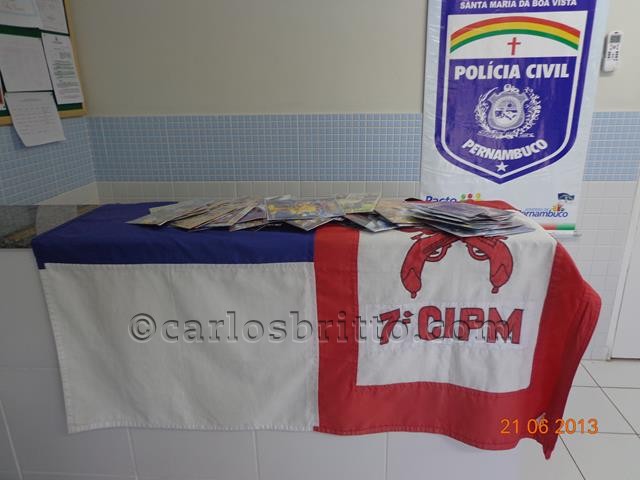 combate pirataria 7ª CIPM_640x480Policiais militares da 7ª Companhia Independente (CIPM) e da Delegacia de Polícia Civil (DPC) em Santa Maria da Boa Vista (PE), no Sertão do São Francisco, realizaram ontem (21) uma operação conjunta com vistas a combater a pirataria de material fonográfico, no Centro da cidade. O resultado foi a apreensão de 122 DVDs piratas. Uma pessoa, acusada de comercializar os produtos, foi detida.
