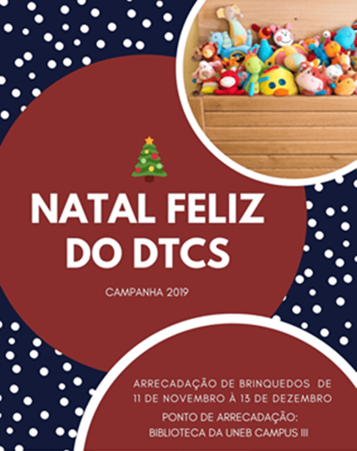 Cultivando o espírito natalino, a primeira edição da campanha Natal Feliz do Departamento de Tecnologia e Ciências Sociais (DTCS)/Campus III, da Universidade do Estado da Bahia (Uneb), arrecadará brinquedos novos a serem distribuídos em instituições e abrigos de crianças carentes de Juazeiro. A ação solidária começou ontem (11) e prosseguirá até 13 de dezembro.