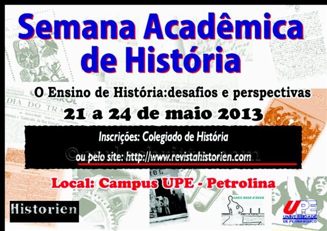 O colegiado de História da UPE Campus Petrolina promoverá a partir desta terça-feira (21) um encontro acadêmico sob o tema “O Ensino de História: Desafios e Perspectivas”.