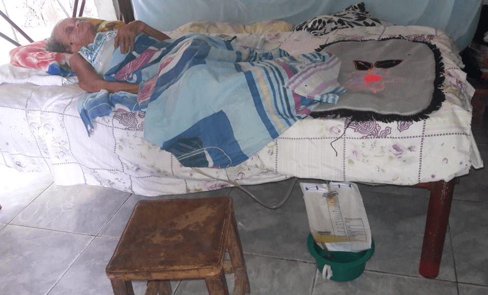 Dona Sebastiana vive deitada em uma cama desconfortável, não anda e nem tem cadeira de rodas. Ela é aposentada, porém os gastos são altos com remédios, fraldas, alimentos – entre outros itens. Os vizinhos doaram móveis e ajudam como podem.