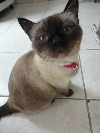 Ela tem pelagem tipo siamês, os olhos azuis e é bem gordinha(foto em anexo); usava uma coleira rosa, é dócil e mansa. Desde já, agradeço.