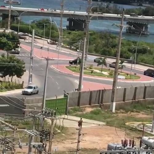 A tentativa, no entanto, não deu certo. No momento em que o vândalo procurava arrancar o fio, houve uma pequena explosão no transformador e, com o impacto, ele caiu e sofreu queimaduras. Em seguida levantou-se, colocou um capuz, saltou o muro da subestação e foi embora sem ser incomodado.