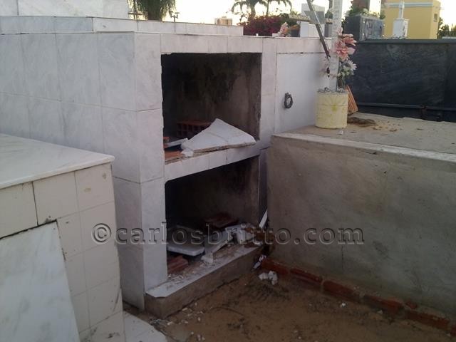É laemtável esse tipo de selvajaria assumida por alguns, os quais embora “possam” ser ignorantes e tenham mal gosto, destroem um local de respeito e de oração, como é o caso dos cemitérios. Cadeia sem pão e água para quem se comportar assim, não só para com o cemitério, mas para todo o patrimonio público ou privado.