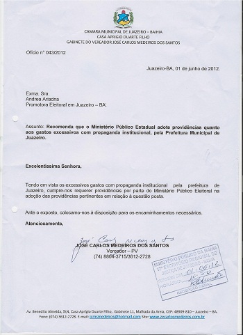 Medeiros acionou o Ministério Público Estadual da Bahia (MP-BA), no início junho, no sentido de que sejam tomadas providências quanto aos gastos – que considera “excessivos” – com propaganda veiculada em mídia televisiva, radiofônica, impressa e virtual. “Esperamos que a justiça possa averiguar e tomar as devidas providências para o melhor uso do dinheiro público”, afirmou o vereador.