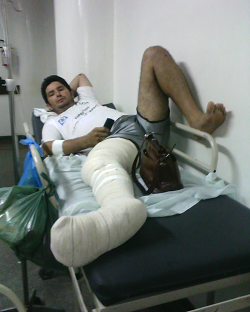 O paciente Rogério Souza da Silva (foto), morador do bairro São Gonçalo, por exemplo, está em cima de uma maca há mais de cinco dias aguardando por uma cirurgia na perna direita, que até agora foi apenas enfaixada. A reportagem do Blog entrará em contato com a assessoria do HUT sobre o assunto.