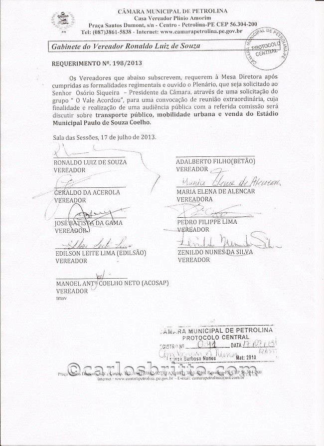 O requerimento que convoca a reunião extraordinária já foi encaminhado à Mesa Diretora da Câmara. Se a proposta for aprovada pelo presidente da Casa, Osório Siqueira (PSB), a audiência irá debater melhorias para o transporte público, mobilidade urbana e a possível venda do Estádio Paulo de Souza Coelho.