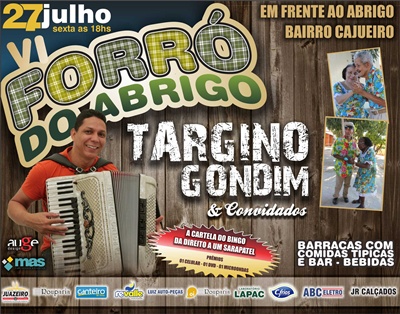 O evento tem por objetivo angariar fundos para a manutenção do Abrigo São Vicente de Paula. A animação da festa ficará por conta do sanfoneiro Targino Gondim e convidados.