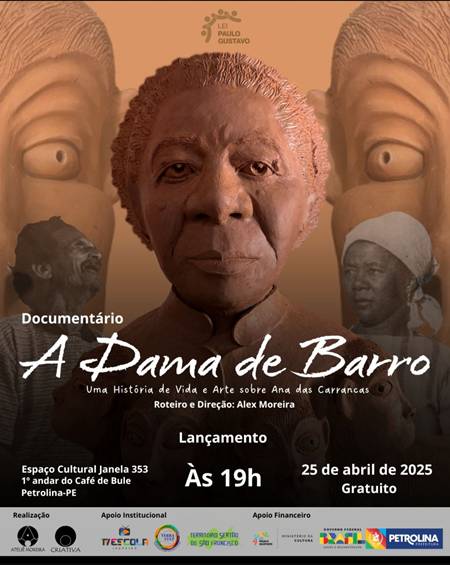 A vida artesã pernambucana Ana Leopoldina dos Santos, a Ana das Carrancas – que ficou carinhosamente conhecida como a ‘Dama do Barro’ – virou documentário, que será exibido na próxima sexta-feira (25) no Espaço Cultural Janela 353 (1º andar do Café de Bule), às 19h. A entrada é gratuita ao público, mas está sujeito a restrição da capacidade devido à lotação.